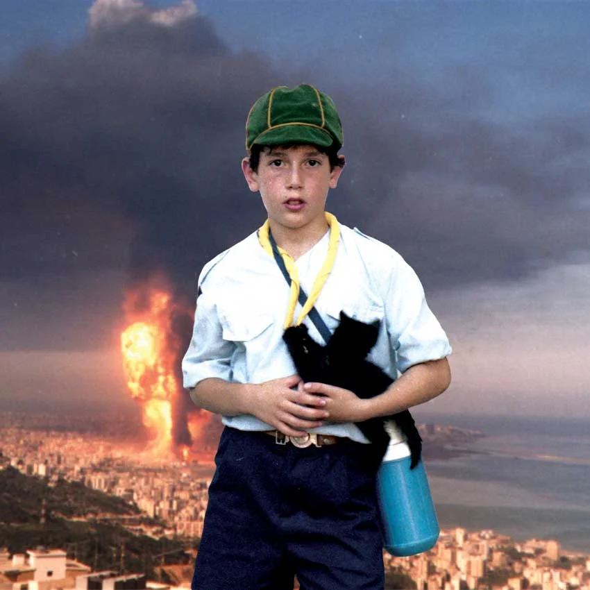 Alfred Tarazi was born in Beirut in 1980. In 2004, he graduated with a degree in graphic design from the American University of Beirut. In 2011 he completed a residency at Krinzinger Projekte in Vienna, and has held two solo shows since then with Galerie Krinzinger, one of Europe’s leading contemporary art galleries. His work has been shown internationally and collected by prestigious institutions and private collections. His entire body of work, ranging across painting, photography, drawing, digital collage, sculpture and installation, revolves around complex historical investigations into the ultimate event horizon of the Lebanese Civil War. Tarazi deploys his visual strategies in order to dig out fields of memory, emplaced haphazardly in a vast expanse of the present tense. A narrative emphasis occurs, at the root of which, he is unearthing critical and historical tools to read past events, provided by the past itself in the manner of a reluctant heritage. Tackling the Lebanese obsession with history, Tarazi playfully interrogates its questionable sources and selective archival practices, highlighting the role of the past as both origin and destination. With merciless realism intersecting both fiction and historiography, the artist articulates the spectacle of war as a syntax of the unimaginable, broken down piecemeal to a lived present. This archaeology of the now-time does not aim to restore, but rather, to represent a historical condition through fragments of anomaly and singularity. The field of representation, however, prevents distance and enclosure: It is a laboratory, a journal, a political inquiry, a memory site and a reality marker.